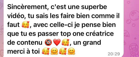 Sincèrement, très sincèrement ! Putain tu régales je crois que c'est de loin la meilleure vidéo au niveau qualité/prix que j'ai jamais eu. Tu as un cul superbe, c'était génial, merci pour tout ❤️(Voir le message original 👇)