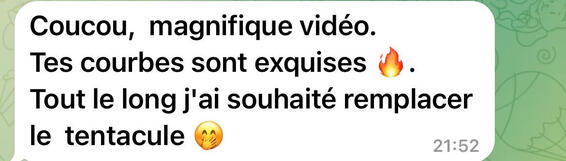Coucou, magnifique vidéo. Tes courbes sont exquises 🔥. Tout le long j'ai souhaité remplacer le tentacule 🤭(Voir le message original 👇)